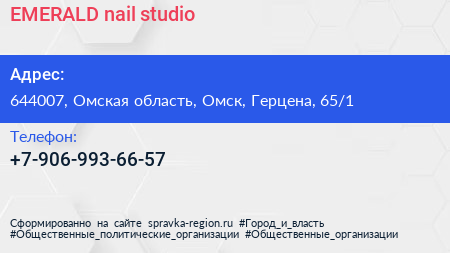 EMERALD nail studio по адресу 644007, Омская область, Омск, Герцена, 65/1 в дальнейшем Организация, размещена в следующих категориях: