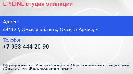 EPILINE, студия эпиляции по адресу 644122, Омская область, Омск, 5 Армии, 4 в дальнейшем Организация, размещена в следующих категориях: