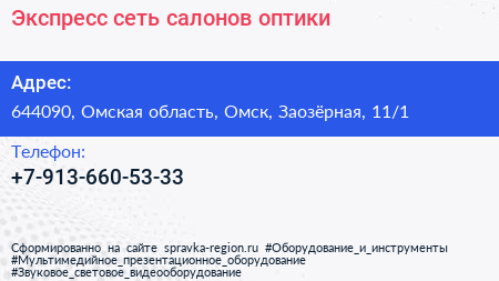 Экспресс, сеть салонов оптики по адресу 644090, Омская область, Омск, Заозёрная, 11/1 в дальнейшем Организация, размещена в следующих категориях: