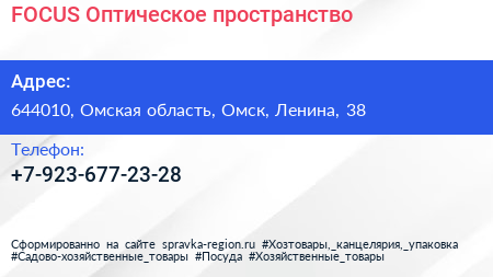 FOCUS, Оптическое пространство по адресу 644010, Омская область, Омск, Ленина, 38 в дальнейшем Организация, размещена в следующих категориях: