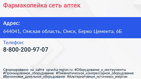 Фармакопейка, сеть аптек по адресу 644041, Омская область, Омск, Берко Цемента, 6Б в дальнейшем Организация, размещена в следующих категориях: