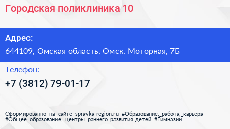 Городская поликлиника №10 по адресу 644109, Омская область, Омск, Моторная, 7Б в дальнейшем Организация, размещена в следующих категориях: