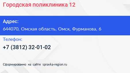 Городская поликлиника №12 по адресу 644070, Омская область, Омск, Фурманова, 6 в дальнейшем Организация, размещена в следующих категориях: