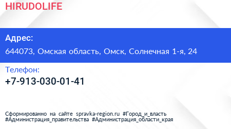 HIRUDOLIFE по адресу 644073, Омская область, Омск, Солнечная 1-я, 24 в дальнейшем Организация, размещена в следующих категориях: