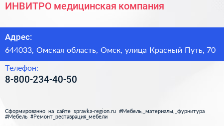 ИНВИТРО, медицинская компания по адресу 644033, Омская область, Омск, улица Красный Путь, 70 в дальнейшем Организация, размещена в следующих категориях: