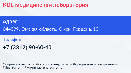 KDL, медицинская лаборатория по адресу 644099, Омская область, Омск, Герцена, 13 в дальнейшем Организация, размещена в следующих категориях: