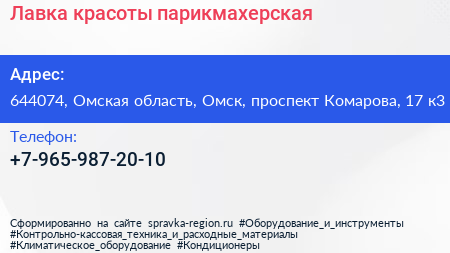 Лавка красоты, парикмахерская по адресу 644074, Омская область, Омск, проспект Комарова, 17 к3 в дальнейшем Организация, размещена в следующих категориях: