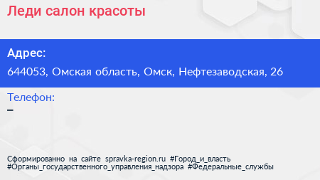 Леди, салон красоты по адресу 644053, Омская область, Омск, Нефтезаводская, 26 в дальнейшем Организация, размещена в следующих категориях: