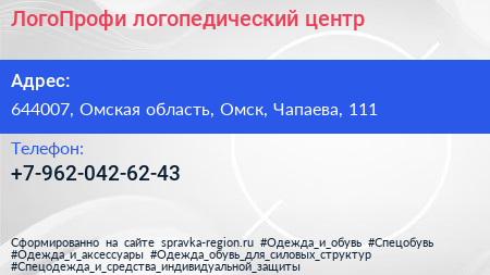 ЛогоПрофи, логопедический центр по адресу 644007, Омская область, Омск, Чапаева, 111 в дальнейшем Организация, размещена в следующих категориях: