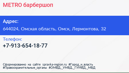 METRO, барбершоп по адресу 644024, Омская область, Омск, Лермонтова, 32 в дальнейшем Организация, размещена в следующих категориях: