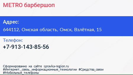 METRO, барбершоп по адресу 644112, Омская область, Омск, Взлётная, 15 в дальнейшем Организация, размещена в следующих категориях: