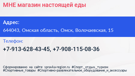 МНЕ, магазин настоящей еды по адресу 644043, Омская область, Омск, Волочаевская, 15 в дальнейшем Организация, размещена в следующих категориях:
