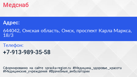 Медснаб по адресу 644042, Омская область, Омск, проспект Карла Маркса, 18/3 в дальнейшем Организация, размещена в следующих категориях: