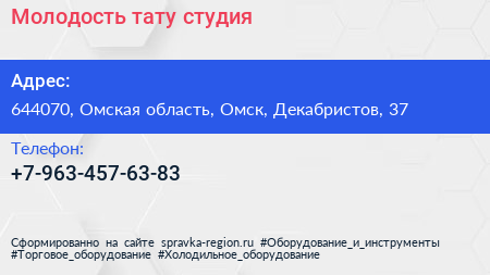 Молодость, тату-студия по адресу 644070, Омская область, Омск, Декабристов, 37 в дальнейшем Организация, размещена в следующих категориях: