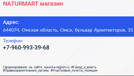 NATURMART, магазин по адресу 644074, Омская область, Омск, бульвар Архитекторов, 35 в дальнейшем Организация, размещена в следующих категориях: