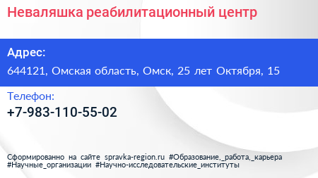 Неваляшка, реабилитационный центр по адресу 644121, Омская область, Омск, 25 лет Октября, 15 в дальнейшем Организация, размещена в следующих категориях: