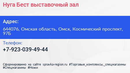 Нуга Бест, выставочный зал по адресу 644076, Омская область, Омск, Космический проспект, 97Б в дальнейшем Организация, размещена в следующих категориях: