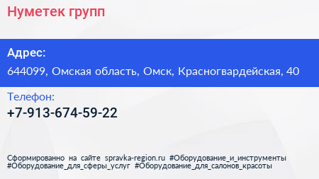 Нуметек групп по адресу 644099, Омская область, Омск, Красногвардейская, 40 в дальнейшем Организация, размещена в следующих категориях: