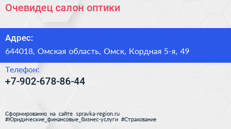 Очевидец, салон оптики по адресу 644018, Омская область, Омск, Кордная 5-я, 49 в дальнейшем Организация, размещена в следующих категориях: