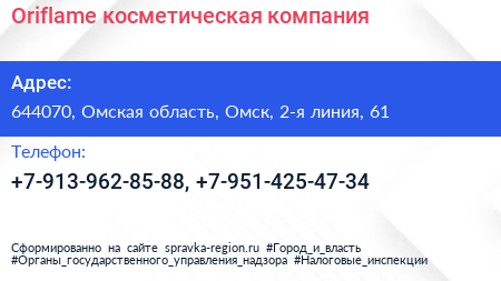 Oriflame, косметическая компания по адресу 644070, Омская область, Омск, 2-я линия, 61 в дальнейшем Организация, размещена в следующих категориях: