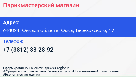 Парикмастерский магазин по адресу 644024, Омская область, Омск, Березовского, 19 в дальнейшем Организация, размещена в следующих категориях: