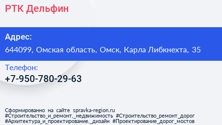 РТК Дельфин по адресу 644099, Омская область, Омск, Карла Либкнехта, 35 в дальнейшем Организация, размещена в следующих категориях: