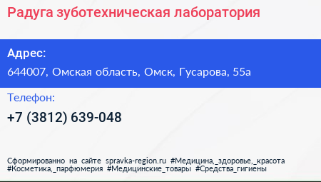 Радуга, зуботехническая лаборатория по адресу 644007, Омская область, Омск, Гусарова, 55а в дальнейшем Организация, размещена в следующих категориях: