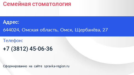 Семейная стоматология по адресу 644024, Омская область, Омск, Щербанёва, 27 в дальнейшем Организация, размещена в следующих категориях: