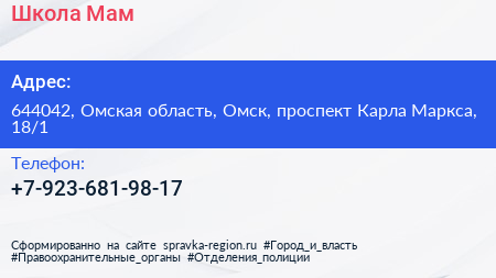 Школа Мам по адресу 644042, Омская область, Омск, проспект Карла Маркса, 18/1 в дальнейшем Организация, размещена в следующих категориях: