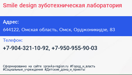 Smile design, зуботехническая лаборатория по адресу 644122, Омская область, Омск, Орджоникидзе, 83 в дальнейшем Организация, размещена в следующих категориях: