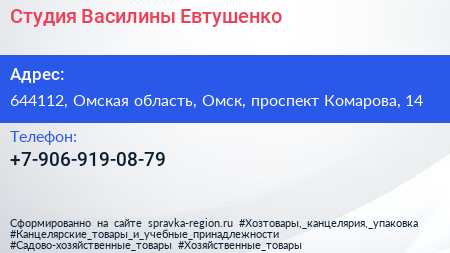 Студия Василины Евтушенко по адресу 644112, Омская область, Омск, проспект Комарова, 14 в дальнейшем Организация, размещена в следующих категориях: