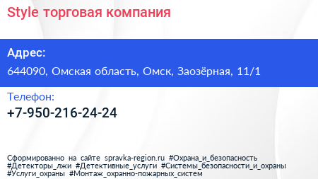 Style, торговая компания по адресу 644090, Омская область, Омск, Заозёрная, 11/1 в дальнейшем Организация, размещена в следующих категориях: