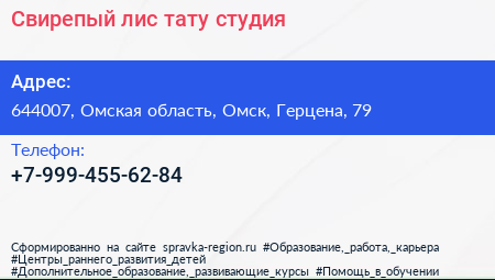 Свирепый лис, тату-студия по адресу 644007, Омская область, Омск, Герцена, 79 в дальнейшем Организация, размещена в следующих категориях: