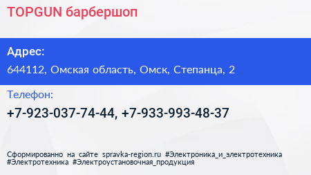 TOPGUN, барбершоп по адресу 644112, Омская область, Омск, Степанца, 2 в дальнейшем Организация, размещена в следующих категориях: