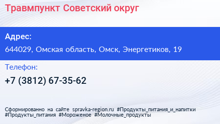 Травмпункт, Советский округ по адресу 644029, Омская область, Омск, Энергетиков, 19 в дальнейшем Организация, размещена в следующих категориях: