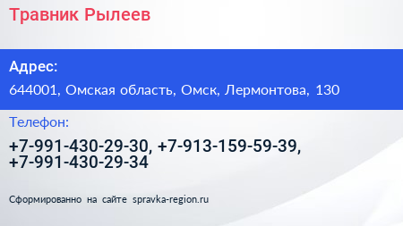 Травник Рылеев по адресу 644001, Омская область, Омск, Лермонтова, 130 в дальнейшем Организация, размещена в следующих категориях: