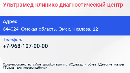 Ультрамед, клинико-диагностический центр по адресу 644024, Омская область, Омск, Чкалова, 12 в дальнейшем Организация, размещена в следующих категориях: