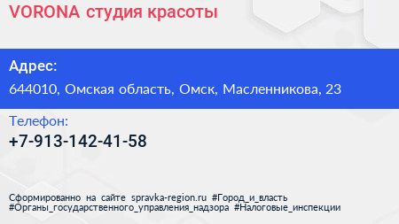 VORONA, студия красоты по адресу 644010, Омская область, Омск, Масленникова, 23 в дальнейшем Организация, размещена в следующих категориях: