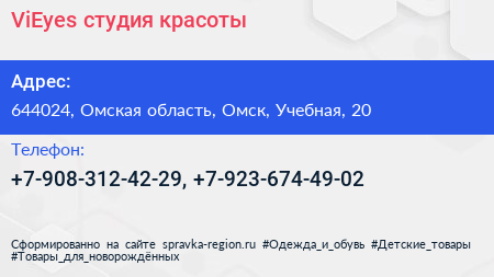ViEyes, студия красоты по адресу 644024, Омская область, Омск, Учебная, 20 в дальнейшем Организация, размещена в следующих категориях:
