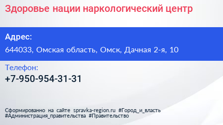 Здоровье нации, наркологический центр по адресу 644033, Омская область, Омск, Дачная 2-я, 10 в дальнейшем Организация, размещена в следующих категориях: