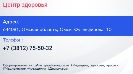 Центр здоровья по адресу 644081, Омская область, Омск, Фугенфирова, 10 в дальнейшем Организация, размещена в следующих категориях:
