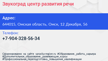 Звукоград, центр развития речи по адресу 644015, Омская область, Омск, 12 Декабря, 56 в дальнейшем Организация, размещена в следующих категориях: