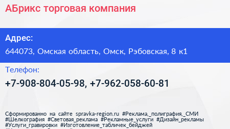 АБрикс, торговая компания по адресу 644073, Омская область, Омск, Рэбовская, 8 к1 в дальнейшем Организация, размещена в следующих категориях: