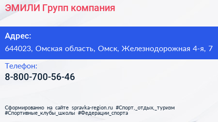 ЭМИЛИ Групп, компания по адресу 644023, Омская область, Омск, Железнодорожная 4-я, 7 в дальнейшем Организация, размещена в следующих категориях: