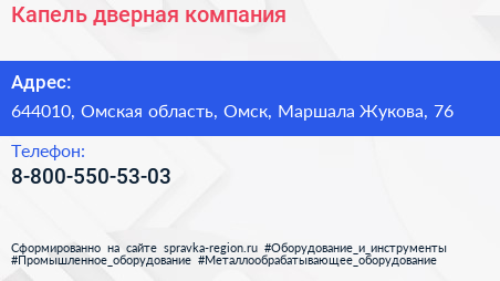 Капель, дверная компания по адресу 644010, Омская область, Омск, Маршала Жукова, 76 в дальнейшем Организация, размещена в следующих категориях: