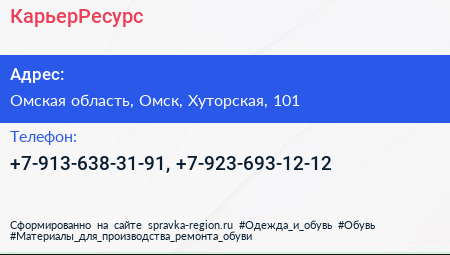 КарьерРесурс по адресу Омская область, Омск, Хуторская, 101 в дальнейшем Организация, размещена в следующих категориях: