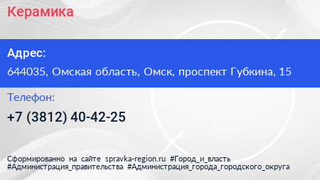 Керамика по адресу 644035, Омская область, Омск, проспект Губкина, 15 в дальнейшем Организация, размещена в следующих категориях: