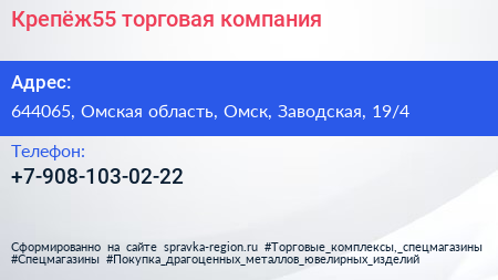 Крепёж55, торговая компания по адресу 644065, Омская область, Омск, Заводская, 19/4 в дальнейшем Организация, размещена в следующих категориях: