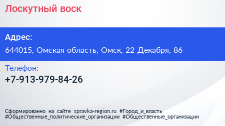 Лоскутный воск по адресу 644015, Омская область, Омск, 22 Декабря, 86 в дальнейшем Организация, размещена в следующих категориях: