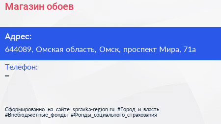 Магазин обоев по адресу 644089, Омская область, Омск, проспект Мира, 71а в дальнейшем Организация, размещена в следующих категориях: